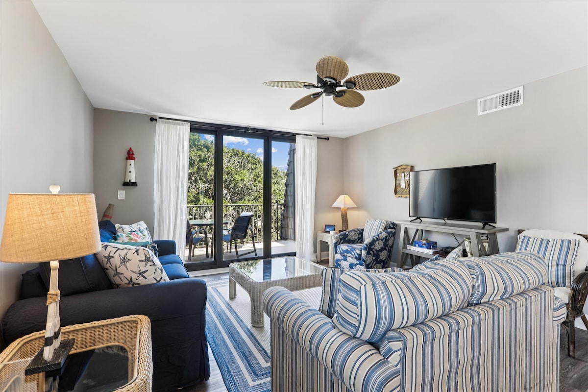 Vår nyrenoverade 2 BR/2 BA Fiddler's Cove villa är tillgänglig för uthyrning! Beläget på den lugna tredje våningen, 24E är rymligt och modernt. Köket har nya skåp, kvartsbänkskivor, GE-apparater och flytande hyllor. Bakom ladugårdsdörrarna finns tvättmaskin, torktumlare och skafferi. Uppdaterade badrum har nya handfat och kakel. Matsalen har en kaffe/vinbar och sittplatser för sex personer. Vardagsrummet har en bäddsoffa, sidostolar och en 65-tums TV.