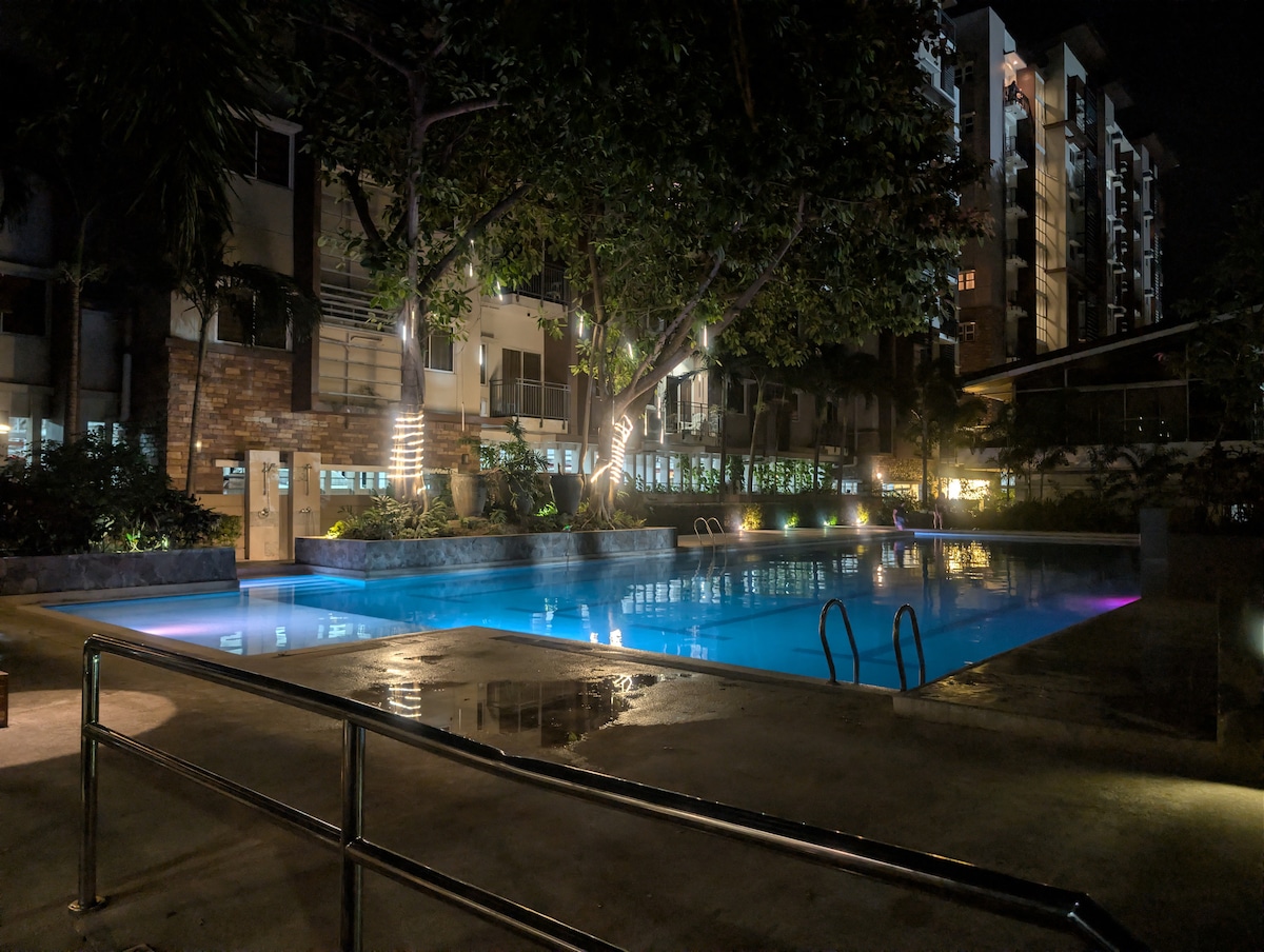 Välkommen till Abreeza Place, en främsta bostadsbyggnad belägen i Ayala Abreeza Mall, Davao City. Denna unika och eleganta Studio Unit-lägenhet, genomtänkt utformad, lovar att lyfta din staycation-upplevelse och ge den perfekta blandningen av komfort och sofistikering. VIKTIGT MEDDELANDE: POOLENS STATUS Vi vill informera dig om att vår pool för närvarande inte är i drift tills vidare.