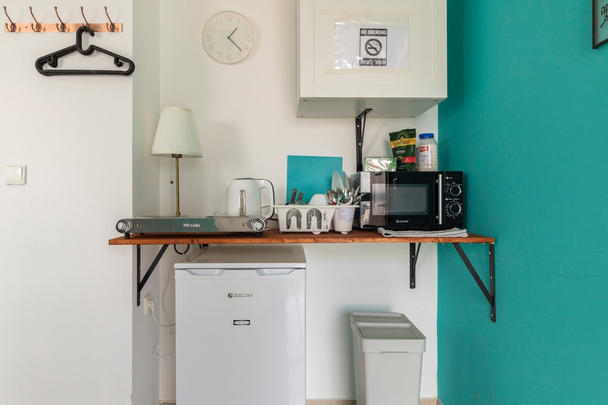 This cute apartment on desirable Ha-Rav Kuk Street is amazingly quiet, given its proximity to the bustling Downtown Triangle. Enjoy the serenity of the babbling fountain in the courtyard, then stroll the lively pedestrian-only Ben Yehuda Street, peruse the colorful produce stalls of outdoor/indoor Mahane Yehuda Market, or take the Jerusalem Light Rail to the Old City and the Central Bus Station, where you can ride the Tel Aviv-Jerusalem railway to Ben Gurion airport in under a half hour.