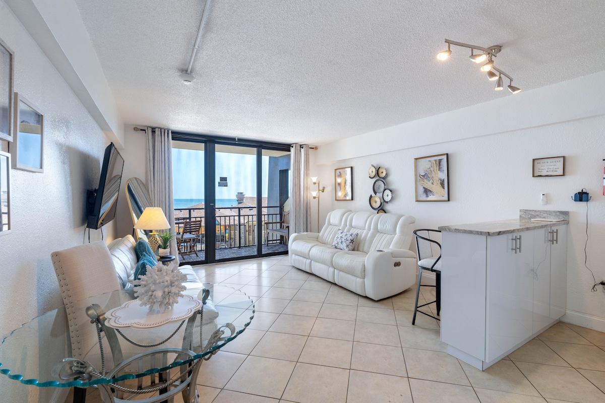 Vi finns på Daytona Beach en 1 minuts promenad genom poolområdet för att vara på stranden. Du kan inte slå denna havsutsikt. Denna studio har renoverats helt i oktober 2024. Njut av den nya 75" TV: n och den överdimensionerade bekväma stolen med ottoman. Bordet möjliggör matlagning och även för arbete. Tillbringa tid på balkongen med utsikt över havet och även med utsikt mot vår gigantiska pool. Det är den bästa platsen för att titta på folk! Njut också av många flockar av Pelicans som flyger vid enheten varje dag.