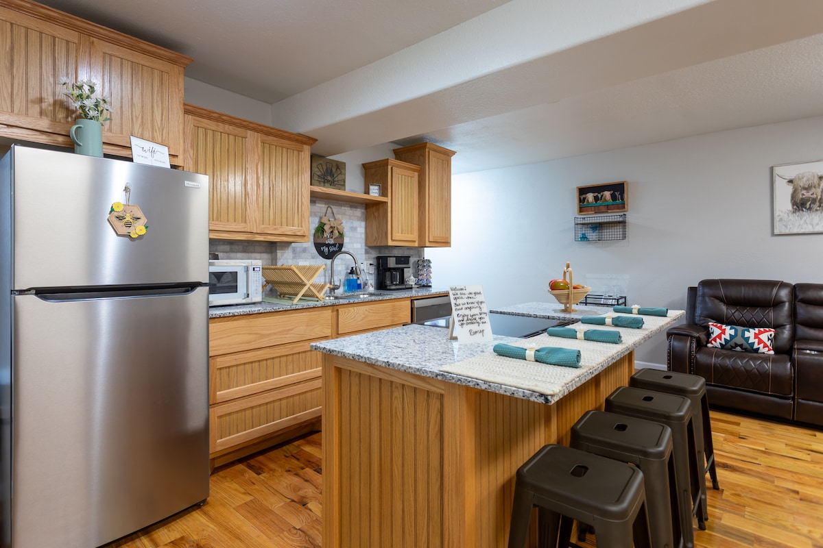 Sparka upp dina klackar i västerländsk tema lugn. Njut av alla moderna bekvämligheter på Bartlesvilles mest historiska aveny, och inom gångavstånd till restauranger och nattliv i centrum. Ditt "Home on the Range" ligger bara några steg från oljekärrna Frank Phillips Historic Home, och bara en kort promenad till Frank Lloyd Wright's Price Tower och Bartlesville Community Center. Delad inhägnad parkering finns tillgänglig. Mys, komfort och kultur väntar dig mitt i skog, mark och stenar!