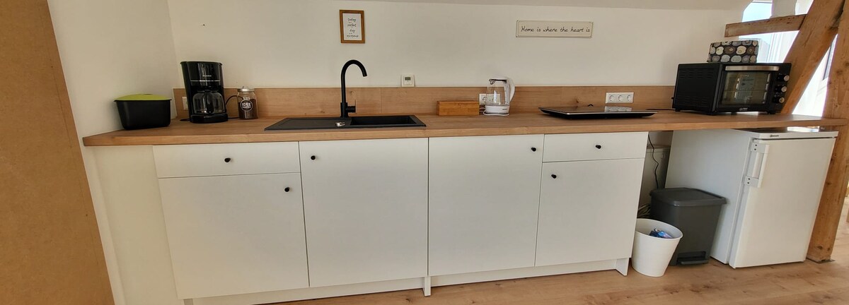 Karibu Nyumbani! Wir begrüßen dich ganz herzlich in unserer wunderschönen Maisonette-Wohnung in bester Lage, die dir für deinen Aufenthalt alle Annehmlichkeiten bietet. Die offene Gestaltung mit den sichtbaren Tragbalken versprüht einen supergemütlichen Charme, die stilvolle Einrichtung lädt zum Wohlfühlen ein. Neben der voll ausgestatteten Küche inkl. Geschirrspüler gibt es einen Arbeitsplatz, Smart-TV, WaMa, eine freistehende Badewanne sowie einen überdachten Balkon.