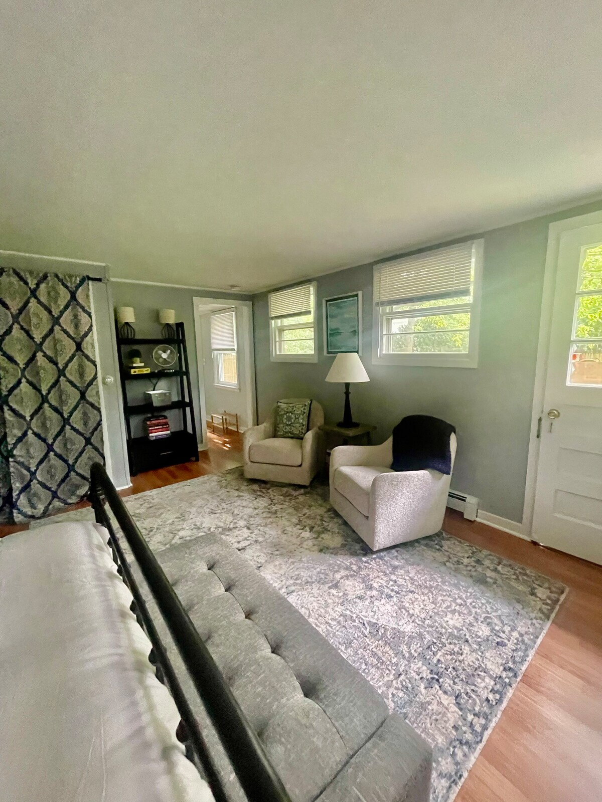 HBTQ-vänligt. Vår 1915 Arts & Crafts bungalow's rymliga svit erbjuder parkering på uppfarten, egen ingång, solrum, sovrum med king size-säng, eget badrum, pentry med kylskåp, mikro, kaffebryggare, brödrost. Koppla av i sängen med 40" HDTV med Amazon Prime, HBO Max, Netflix, premium-kabel. Njut av privata trädgårdar för att sola, läs en bok eller en kopp kaffe. Kort bilresa till 4 vingårdar, teater och tågstationen. Jag ansvarar inte för wifi.