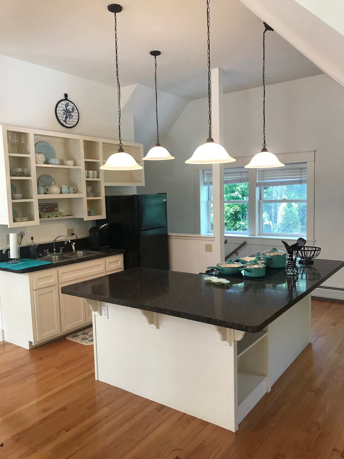 Vi har en öppen, luftig studiolägenhet med en dubbelsäng, en dubbelsäng och en dubbelsäng under den dubbla, privata badrummet och fullt utrustat kök, som ligger cirka 25 miles, eller cirka 40 minuters bilresa, från Acadia National Park. Husdjur är välkomna eftersom vi har ett litet inhägnat område på bakgården. Ta hem en hummer och laga den i det fullt möblerade köket.