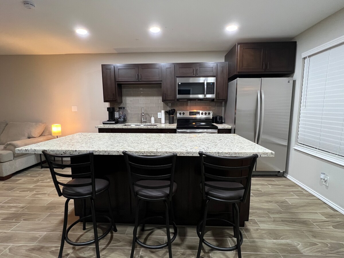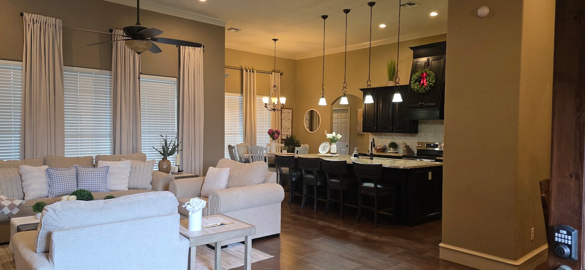 Mitt i hjärtat av Del Rio i mycket eftertraktat grannskap, 2 korta kvarter till Main St! Exklusiva möbler, effektivt kök, 4 rymliga sovrum 2 kompletta badrum med mjuka handdukar. Välkomnande veranda och underhållande, inhägnad bakgård. Enkel, men klassisk modern design, passar bekvämt grupper. Lång uppfart för flera fordon, båtar, husbilar. Njut av fullständig integritet, du får tillgång till hela huset. Domstolar, underhållning, matställen, bibliotek, restauranger, kyrka bara några steg bort!