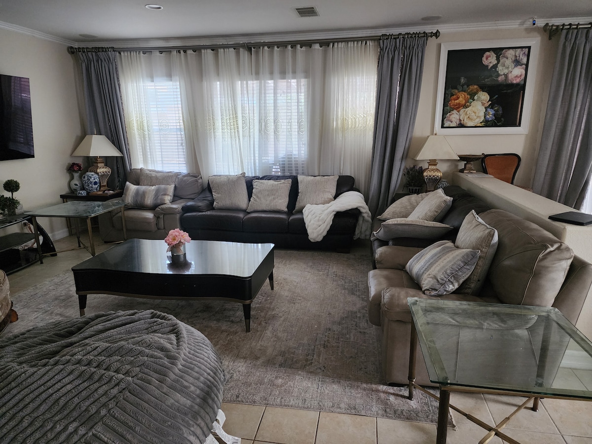 Our home is located in a quiet desirable neighborhood. Plenty of space to spread your wings. A lot of reading material in almost every room. A room just for kids (if you bring them). Indoor and outdoor lounge areas, office space, High chair, baby tub & gate to accommodate little ones. Driveway and street parking available. No smoking in the home. If we have to remove the smell of smoke from cigarettes or marijuana, there will be a $300.00 charge
