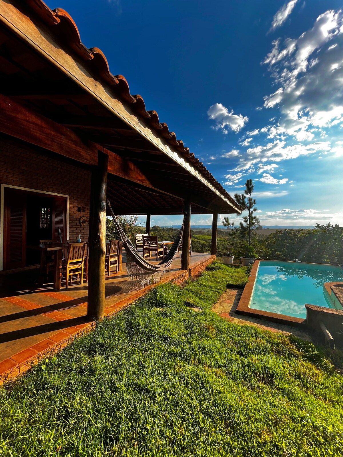 Hus byggt av ett par fransmän som är förälskade i vår Serra da Canastra. Beläget nära staden och flera vattenfall. Med en rymlig balkong – allt i rustik stil, rymmer den upp till 10 personer, perfekt för att njuta av poolen, ha grill och beundra landskapet och floran – mycket karakteristisk för Cerrado. LANDSBYGD: ÄR UTSATT FÖR DAMM, DJUR/INSEKTER. VI TILLHANDAHÅLLER INTE SÄNG-/BADLINNEN.