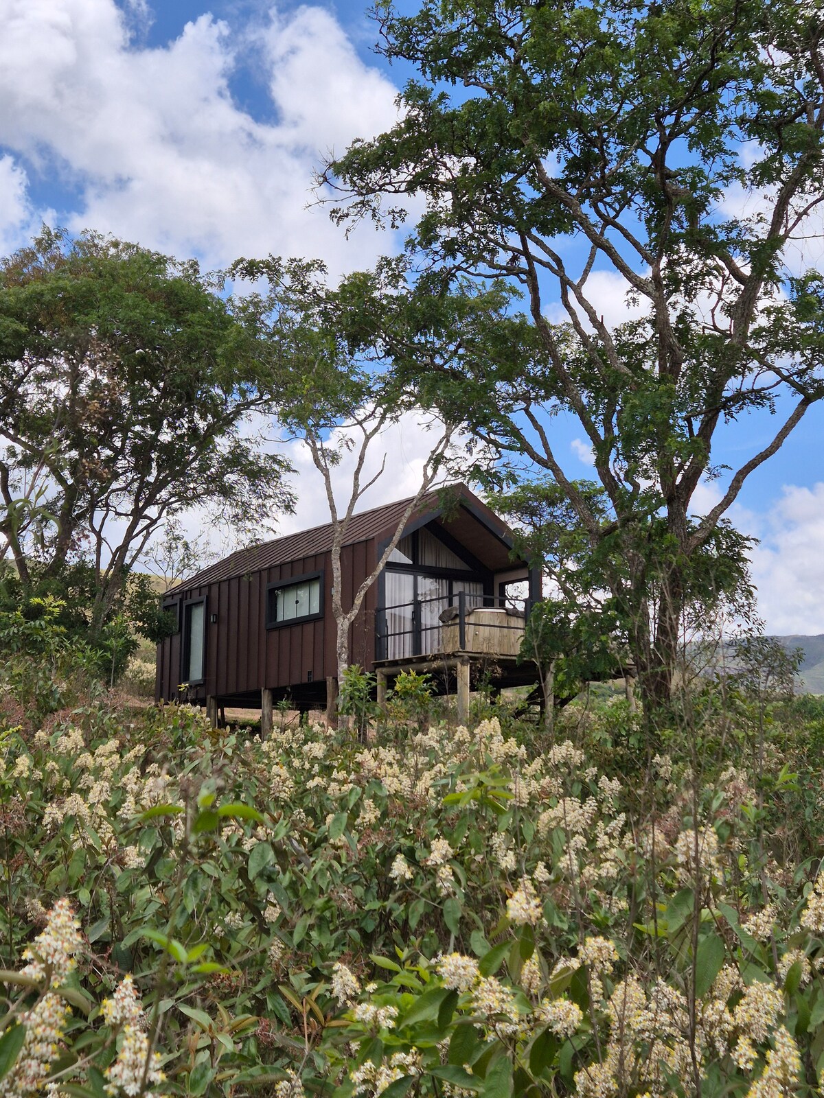 Chalé med utsikt över Serra da Canastra. Tänk dig att vakna till naturens ljud och en oförglömlig soluppgång mitt i ditt fönster. Vår nybyggda alpstuga vetter mot Serra da Canastra och erbjuder en unik upplevelse av att få kontakt med naturen — utan att ge upp komfort. Perfekt för par, boendet har: Mysig säng Badkar Luftkonditionering Utrustat kök Privat badrum - Direkt tillgång till dammen Wifi Badkar med solfångare *