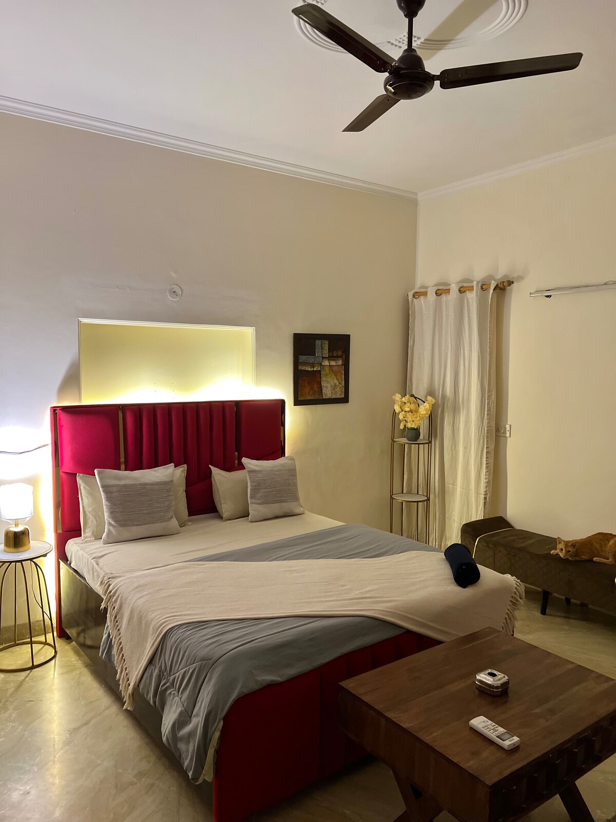 Upptäck The Lush Patio – din fridfulla 2BR flykt i hjärtat av södra Delhi. Vakna till grönska, njut av kaffe på en privat balkonggunga med parkutsikt och koppla av i mysiga rum utformade för komfort. Med separata ingångar för integritet, ett modernt tvättrum och tillgång till ett kök + lobby är detta boende perfekt för familjer, par och vänner som söker lugna vibbar men ändå bo nära stadens liv. En vistelse här känns som en tillflyktsort du aldrig vill lämna.