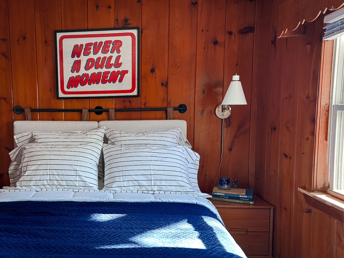 Gäster kommer att älska vårt ljusa One King-rum, med en bekväm king-säng med en madrass med kuddtopp, 400 trådar, höghastighets Wi-Fi, mörkläggningsgardiner, en platt-TV, kylskåp, luftkonditionering och mycket mer. Boka med oss — vårt luftiga boende i South Yarmouth, MA, är ett av de bästa i området.