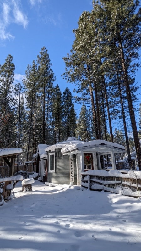 Vår lilla timmerstuga är en mysig tillflyktsort, nära vandring, mountainbike och längdskidåkning men bara 10 miles från bekvämligheterna i Bend Oregon. Det är en rustik plats, med moderna detaljer, som en gasspis, kylskåp och en gaskamin. Badrummet är fristående från stugan — steg från dörren. Det är fullt utrustat med VVS och dusch. Vårt boende är perfekt för personer som älskar naturen med bekvämligheter du är van vid hemifrån. Inga barn under 12 år — Och tyvärr, inga husdjur.