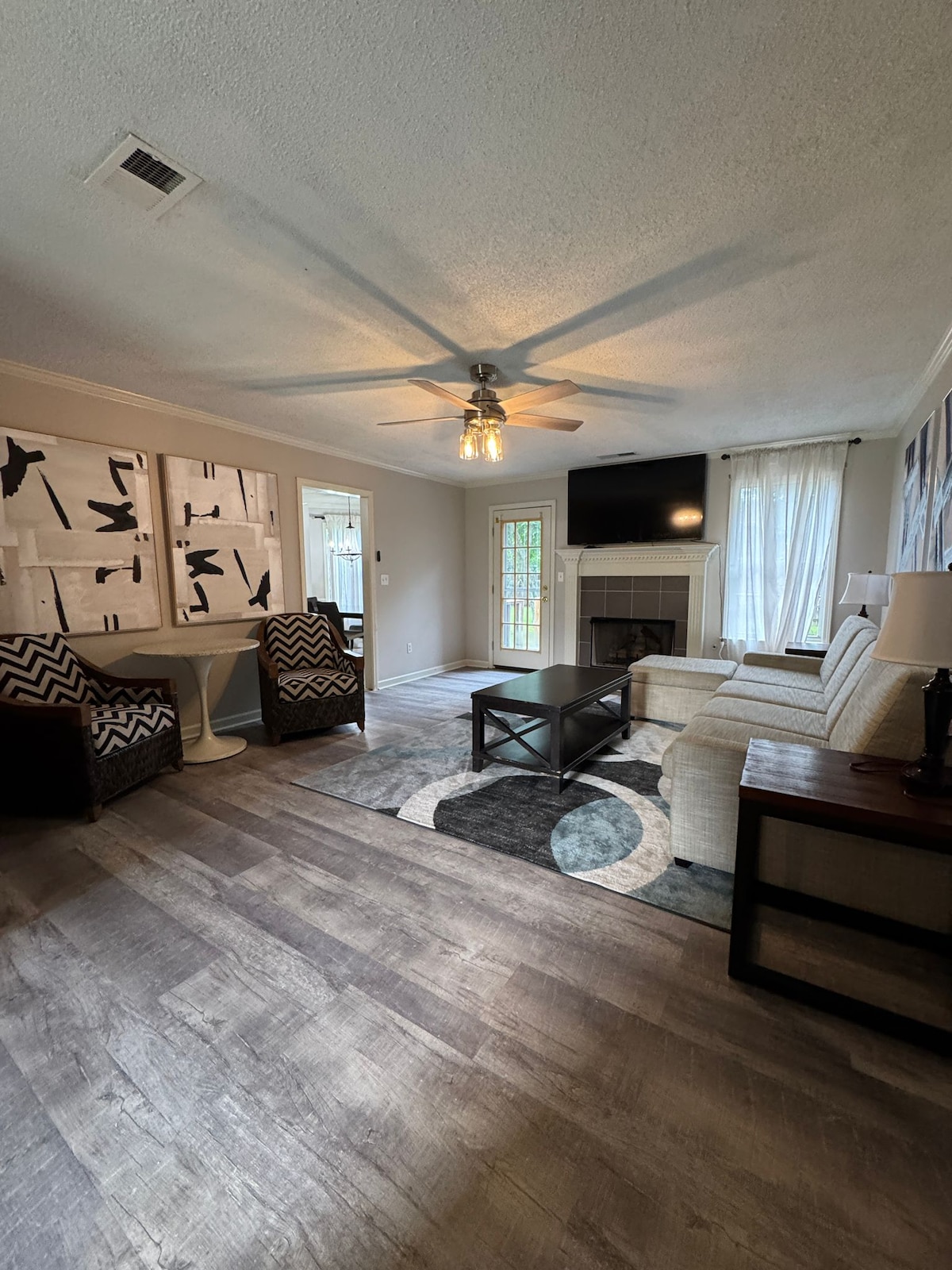 The Space • Smart TVs in the living room and owner suite • Enclosed backyard with patio set • Fully stocked kitchen • Smart washer and dryer • Central AC and heating • 2-car garage plus driveway parking • Keyless entry • Super-fast WiFi • Dedicated workspace Sleeping Arrangements • King bed in owner suite • Queen beds in other bedrooms Additional Features • Owner suite with soaking tub and shower • Dining room • Reclining couch • Exterior security system