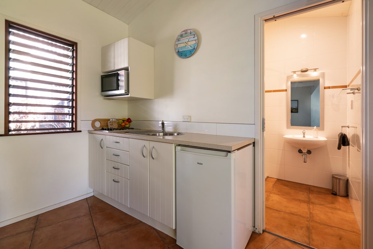 Studio 16 är ett fristående modernt ljusfyllt utrymme perfekt för ett par. Det är öppen planlösning i design med sovrum, vardagsrum och pentry i ett. En luftkonditioneringsenhet finns i detta område. Det separata badrummet är helkaklat med en stor duschkabin. Det finns också en rymlig promenad i garderoben med gott om plats för dina resväskor. En tvättmaskin finns i detta område. Detta är ett rök- och husdjursfritt boende.