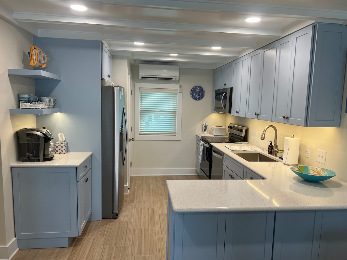 Nyrenoverad och designad 2 sovrum/2 badrum strandlägenhet med de mest bekväma sängarna tänkbara. Mitt i hjärtat av Dewey Beach med en utomhuspool och bara 1 kvarter till strand och bukt. Ett sovrum har en dubbelsäng med eget badrum. Det andra sovrummet har en Queen och en Twin storlek sängar i anslutning till det andra badrummet. Det fullt utrustade köket har rostfria vitvaror, granitbänkskivor, en ö med sittplatser och tvättmaskin/torktumlare. 2 parkeringsplatser ingår.