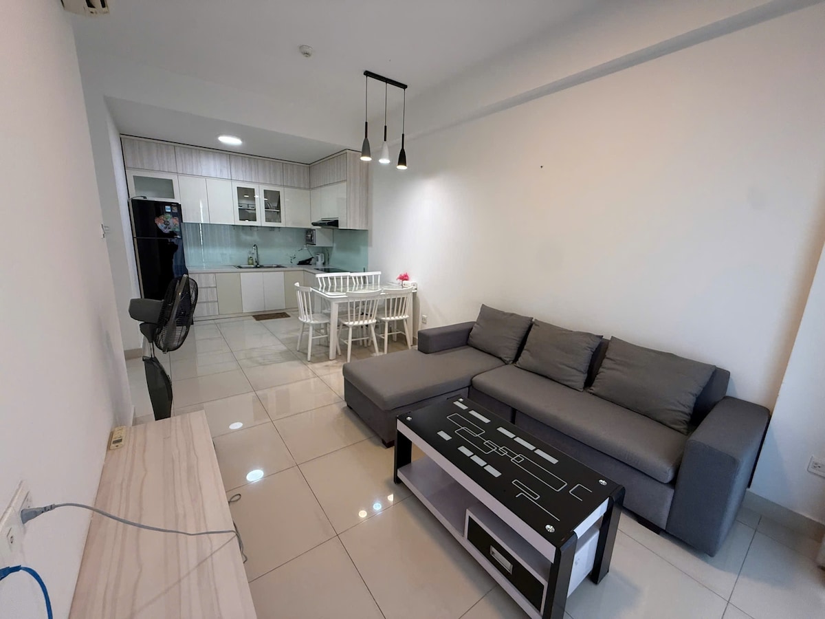 Vacker lägenhet med 2 sovrum på Diamond Island är berömd för sin grönska och enastående faciliteter som kommer att hjälpa dig och din familj att ha en bra semester. 2 sovrum och sval balkong med flodutsikt. Gästfaciliteter är fria att använda när du bor i lägenheten: Olympisk pool, jacuzzi pool. På bottenvåningen finns Winmart och bekväma butiker, café, restaurang... Höghastighetsinternet 150 Mbps.