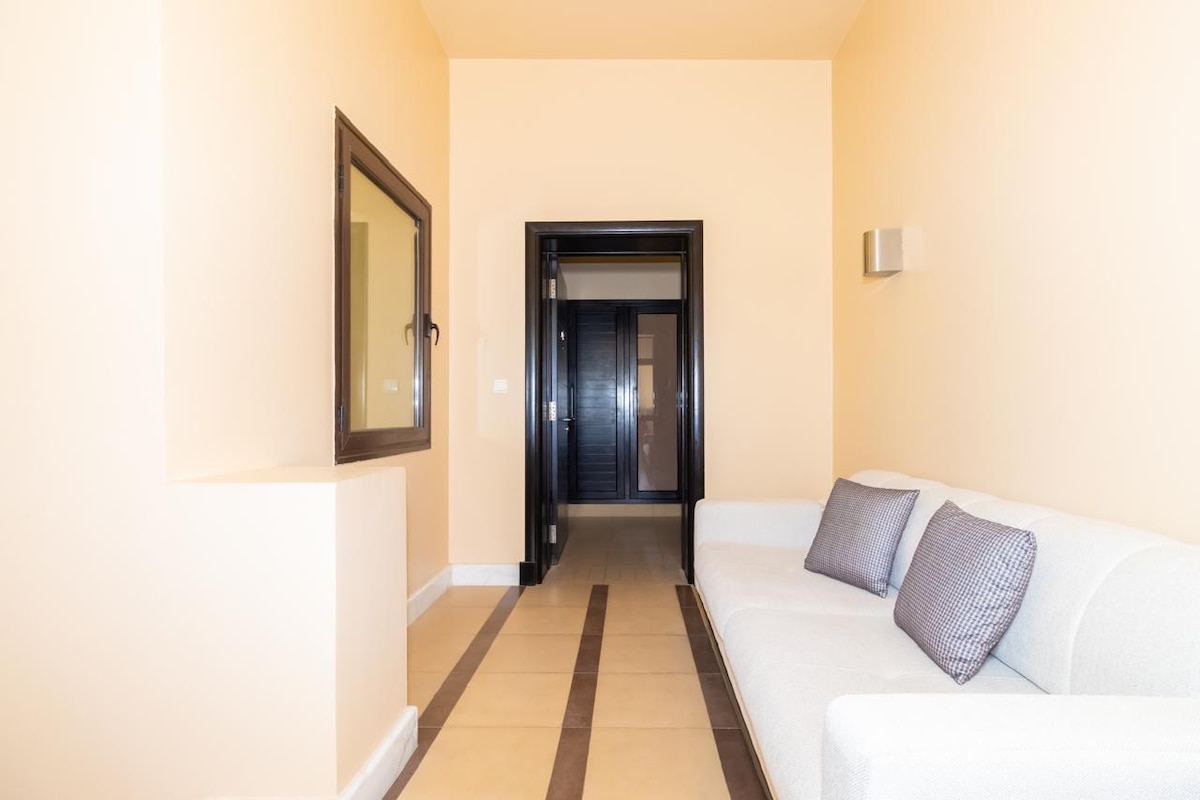 Min lägenhet har 1 rum med en dubbelsäng för 2 personer, och ett rum med en dubbelsäng för 2 personer, och 1 litet rum med en liten säng för 1 person, alla rum har ett badrum, och ett badrum finns i vardagsrummet, det inkluderar bekväma soffor. Dessutom finns ett skafferi med all nödvändig matlagnings- och serveringsutrustning. Min lägenhet är en del av The Adress Fujairah Hotel, Alaqah. Min lägenhet ligger på bottenvåningen där du kan njuta av balkongen