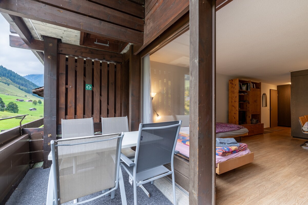 Njut av en paus i denna hemtrevliga studio (ca 42 m2). Observera: Inget wifi! Beläget på bottenvåningen i stugan, har den en egen ingång. Höjdpunkten är den täckta sittplatsen, det gröna området samt utsikten över byn och Chuenisbärgli. Till busshållplatsen till byn, Adelboden/Post eller dalstation Oey/gondollift, är det 2 minuter. Sista bussförbindelse på kvällen: 17:30 Gångavstånd till Adelboden Post: 40 min Shopping/bageri i distriktet