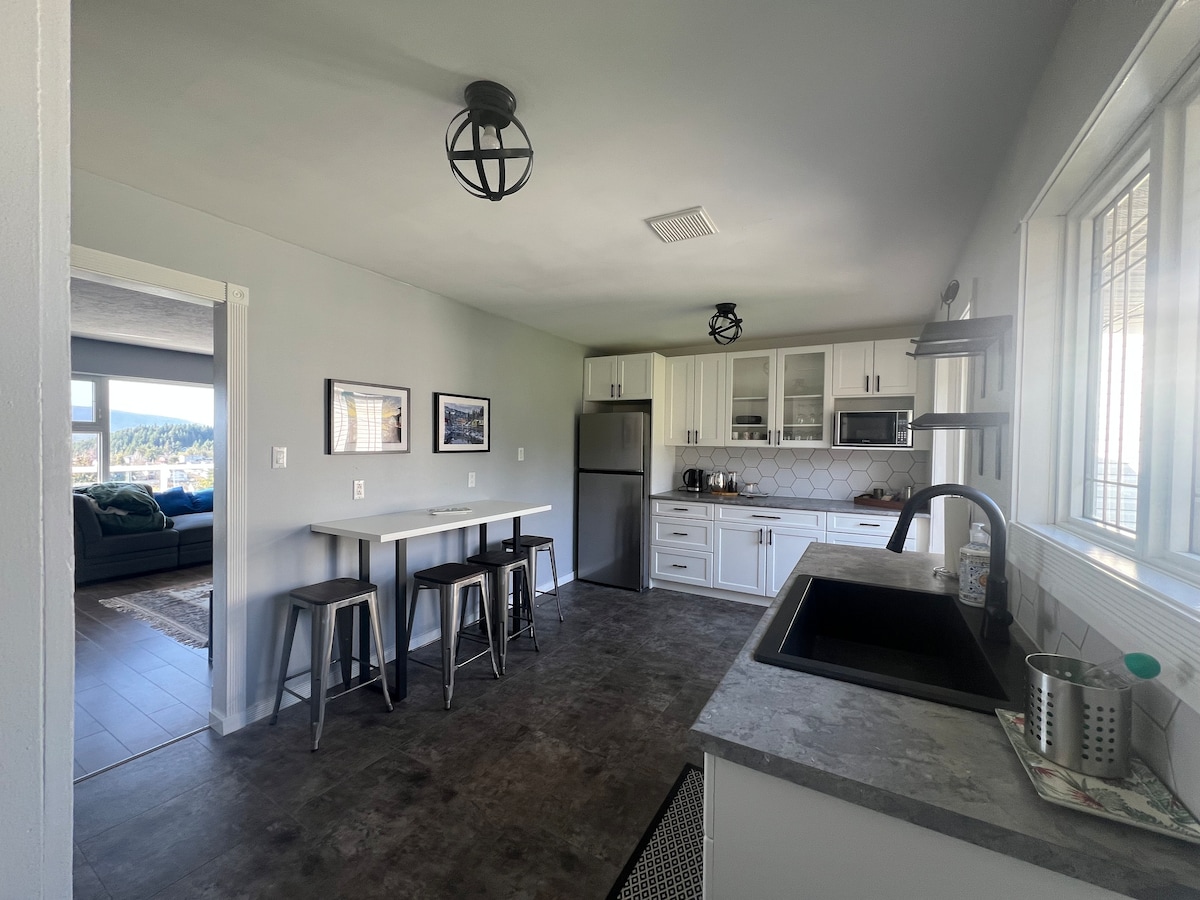 Denna rymliga svit med 2 sovrum erbjuder den perfekta blandningen av komfort och bekvämlighet. Beläget 5 minuters bilresa från centrala Prince Rupert. Utrymmet: Sovrum 1: Har en dubbelsäng och en enkelsäng, perfekt för familjer eller små grupper. Sovrum 2: Dubbelsäng för en lugn natts sömn. Badrum: 1 badrum. Kök för att laga mat. Gratis Wi-Fi. Egen ingång. Uteplatsdäck. Parkering: Lastbil i standardstorlek/arbetsbil/bil Notera: Rökning förbjuden och fester är ej tillåtna. Inga husdjur är tillåtna att ta med.