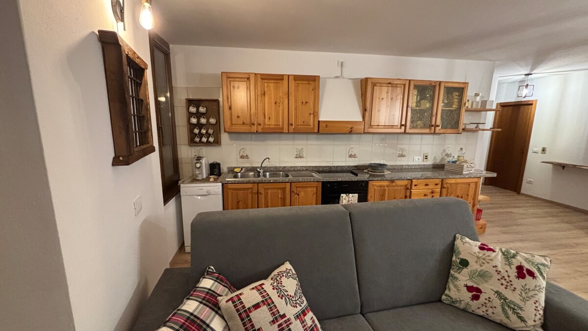 Vacker lägenhet på bottenvåningen med separat ingång, belägen i centrum av Dimaro, bestående av en öppen entré med kök och vardagsrum med bäddsoffa, 2 badrum och 2 sovrum, stort utomhusområde på tre sidor av huset. De viktigaste tjänsterna finns tillgängliga, såsom kylskåp, frys, spishäll med induktionsplattor, elektrisk ugn, diskmaskin, hårtork, tvättmaskin och Wi-Fi. Sängkläder ingår i priset. Underjordiskt garage med tilldelad parkeringsplats.