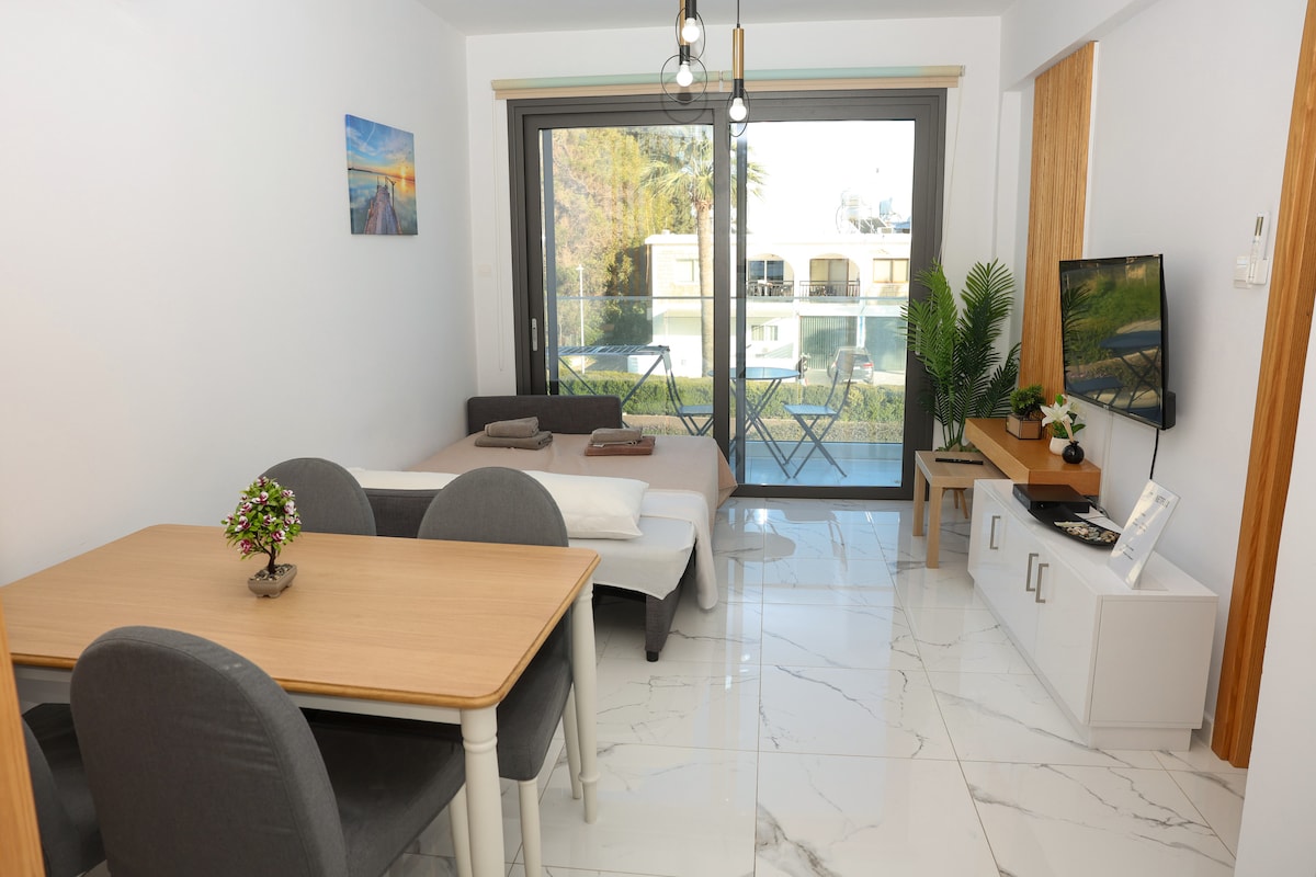 Upplev lyx och komfort i hjärtat av Paphos! Denna eleganta lägenhet ligger bara 3 minuters bilresa (eller 10 minuters promenad) från centrum, inbäddad i ett lugnt grannskap. Lokala tjänster, såsom stormarknad, apotek och kiosk ligger alla inom 1 minuts promenad, och busstationen ligger bara några steg bort. Närmaste sjukhus ligger 2 minuters bilresa bort, medan Paphos flygplats ligger 20 minuters bilresa bort. Detta fullt utrustade utrymme är perfekt för fritid eller affärer och lovar en oförglömlig upplevelse.