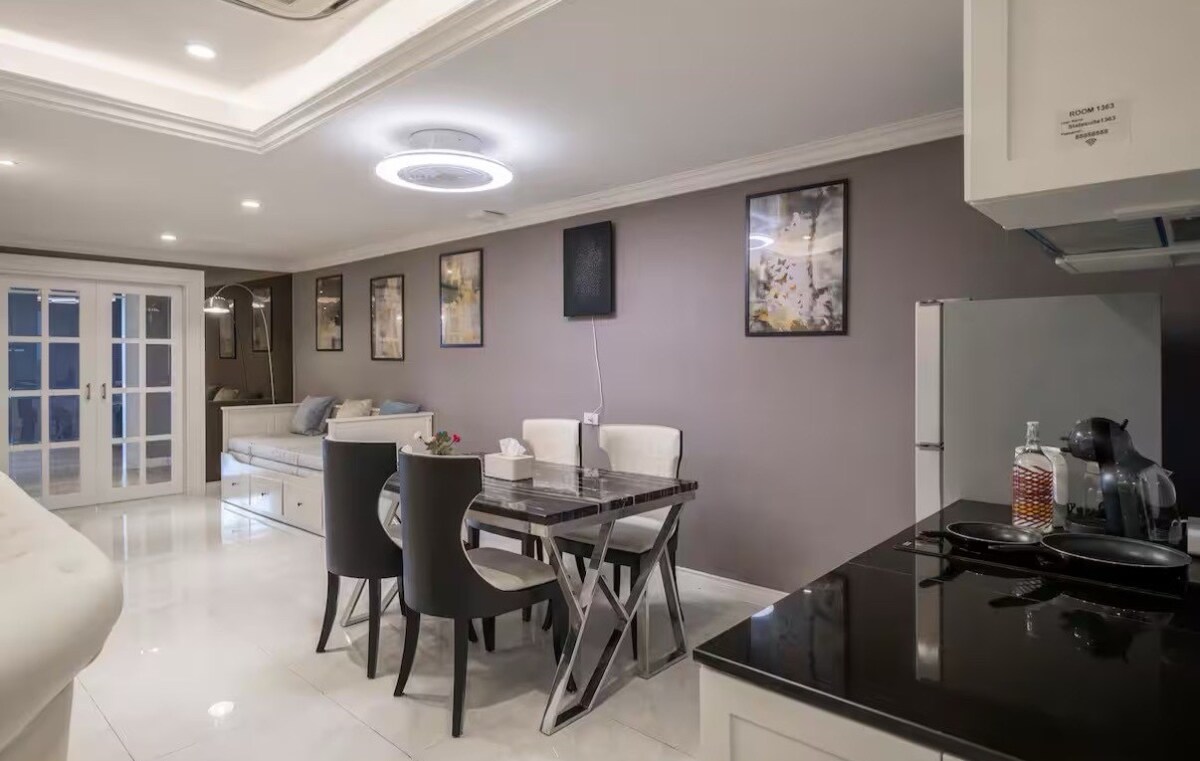 *Ny annons hanteras av en Superhost på Airbnb* Denna nyrenoverade rymliga 1-BD-lägenhet (~50 kvm) har tropisk design för en oas i staden. Njut av fullständiga faciliteter, inklusive gym, pool och bastu. Beläget i trendiga Thonglor hittar du många restauranger, kaféer och barer bara några steg bort, vilket gör det perfekt för par, familjer eller digitala nomader som söker det bästa av Bkk. Närmaste BTS-station är Thong Lo, som erbjuder den ultimata bekvämligheten att ha allt du behöver inom gångavstånd.
