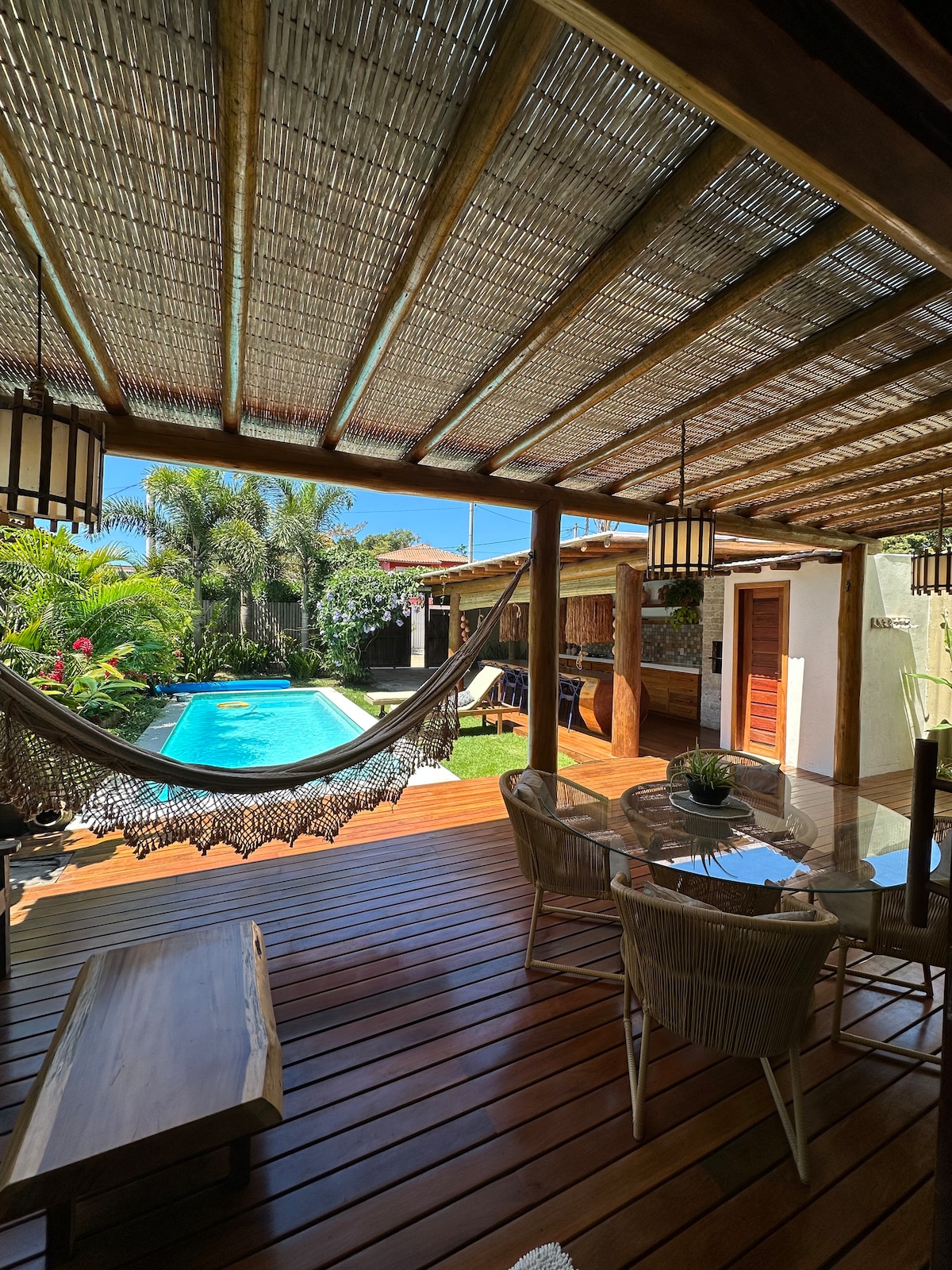 🌿 Kom och upptäck denna charmiga tillflyktsort på ett verkligt privilegierat läge, bara 50 meter från Quadrado. Casa Manga har ett huvudhus, en fristående bungalow och en rymlig tropisk trädgård med pool och grillplats, som erbjuder ännu mer avskildhet och lugn.