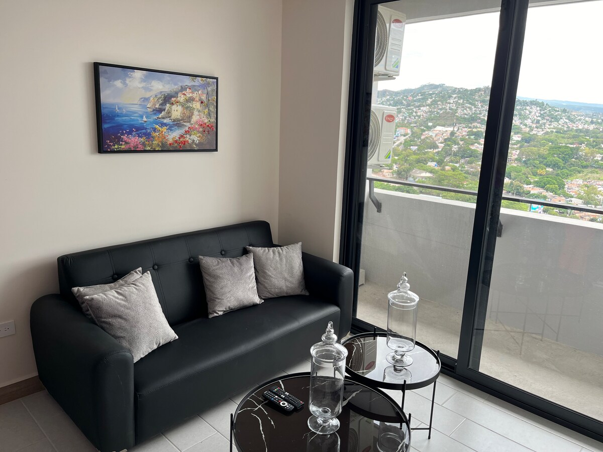 Njut av en elegant upplevelse i detta lyxiga boende i ett område av de mest exklusiva, lugna och centrala i Tegucigalpa. Särskilt att tillbringa i en familj och arbetsmiljö. Det har tjänsterna: - WIFI 100 MB röd 5g – Röststyrning (Alexa) – Netflix, Max och Prime - Inträde utan att gå igenom lobbyn, nyckellås - Strikt säkerhetsvakt dygnet runt -50"TV i Sala, 43" i huvudrummet och 34" i 2 sovrum. - Matlagning på lager och redo att laga mat - Centro de Lavado