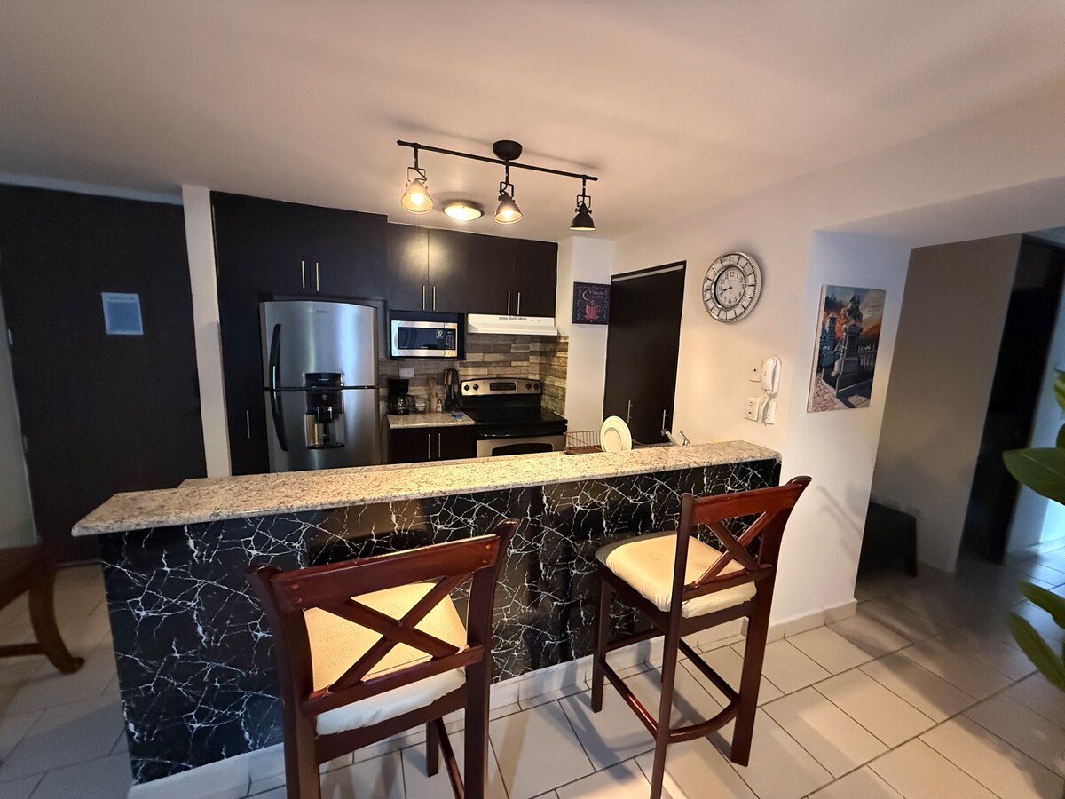 Denna mysiga och fullt möblerade lägenhet ligger i centrum av Tegucigalpa. Det är bara två kvarter från 2 stormarknader (La Colonia och Walmart) och 4 kvarter från Cascadas Mall eller Multiplaza Mall. Den har luftkonditionering och alla köksaker. Flygplatsen ligger ungefär 10 minuter från lägenheten. Det finns flera olika restauranger nära lägenheten. Vi har säkerhet och kameror dygnet runt. Det är ett lugnt grannskap nära en katolsk kyrka.