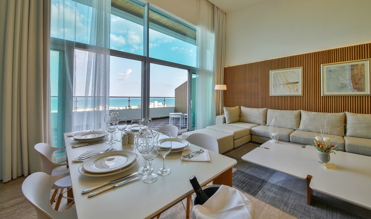 Denna hörnsvit garanterar en rymlig och njutbar semester med poolutsikt. Den perfekta platsen för en perfekt familjesemester. Det finns två sovrum med bekväma sängar (med sammankopplande dörr) eller ett sovrum med utdragbar bäddsoffa. Antibakteriella kuddar garanterar dig en hälsosam sömn. För att känna dig helt hemma, för din fullständiga komfort, har du till ditt förfogande ett fullt utrustat pentry. Rekommenderad boendekapacitet - upp till 4 vuxna.