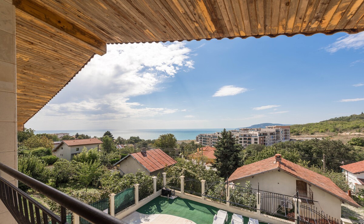 Njut av en semester i vår villa i Fish-Fish do Balchik, bara 10 min promenad från stranden. Villan erbjuder 5 sovrum för 13 personer, 4 badrum, två terrasser med havsutsikt, en uppvärmd pool med solstolar och ett lusthus med grill. Köket är fullt utrustat och alla rum är luftkonditionerade. Vi har inhägnad parkering för 2 bilar och ytterligare parkeringsplatser. Husdjur är välkomna. Perfekt ställe för avkoppling och ha kul vid havet!