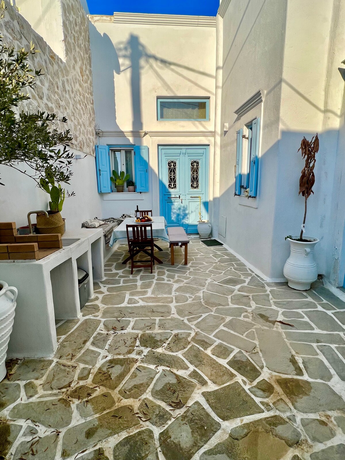 Nyrenoverad kykladisk studio belägen direkt vid stranden Agia Paraskevi. Njut av en lugn, privat semester borta från bullret, men bara 10-15 minuters promenad från livliga Kamaris restauranger och butiker. Detta eleganta hem kombinerar traditionell stil med modern komfort och erbjuder omedelbar tillgång till stranden och exklusiva bekvämligheter. Perfekt för dem som söker lugn och det lugnande ljudet av Egeiska havet. Upplev det bästa av Santorini strandliv i en lugn och sofistikerad miljö.
