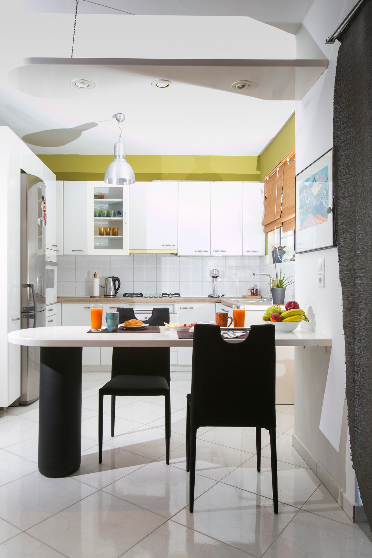 Traditionellt boende i Kamari-Santorini totalrenoverat 2019 och omgiven av en gammal storslagen bougainvillea. Läget ligger bara 2 minuters promenad från centrum av Kamari och 500 meter (5 minuter) från den berömda svarta stranden Kamari. Gästerna kan hitta allt i närheten, från restauranger, snacks, kaffe och barer. Området är traditionell stil mestadels bland lokalbefolkningen. Vårt hus är perfekt för familjer med barn och par. Rent, enkelt och funktionellt med kärlek till dig.