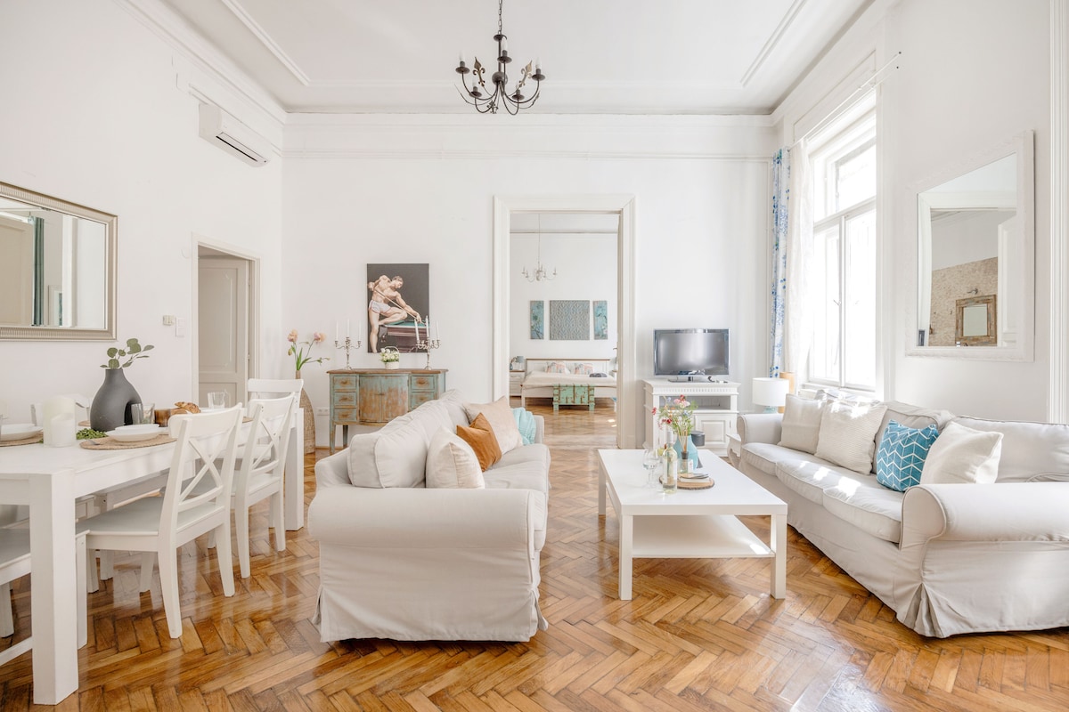 Lyx i hjärtat av Budapest, utrustad med välkända designmöbler och förstklassigt inredningsmaterial. Denna 150 m² fantastiska lägenhet med en fantastisk utsikt över Budapest Eye är ett mästerverk av inredning. Lägenheten är ett steg från läckra restauranger, barer och Budapester Night Life. Lägenheten är helt restaurerad och uppgraderad på ett mycket modernt sätt och utrustad med en 86'' TV och Sonos 7,1 Sourround System, vilket möjliggör en mycket enkel anslutning till surfplattor och telefoner.