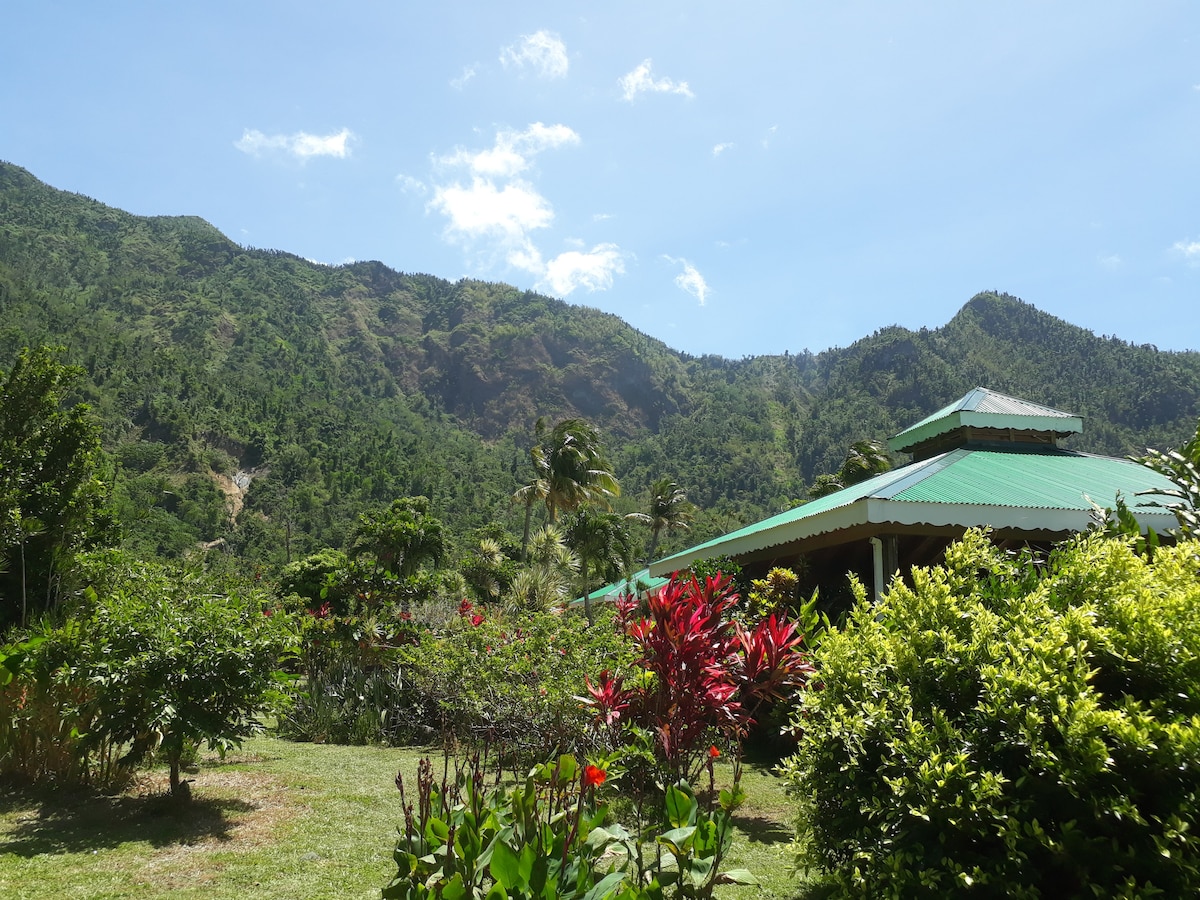 Waitikubuli National Trail vandrare och naturälskare, tält (ta med egna eller hyr ett från oss) bakom huvudköket (se bilder). Du får tillgång till tomten, inklusive kök och tvättrum (inklusive nybyggd dusch), grill och uteplats. Gratis frukost ingår (se anmärkningar nedan). Ytterligare lokala måltider är tillgängliga för köp med 24 timmars varsel. Kom och njut av en avkopplande vistelse på Kalinagos land med fantastisk utsikt över havet och holmar, vi ses snart!