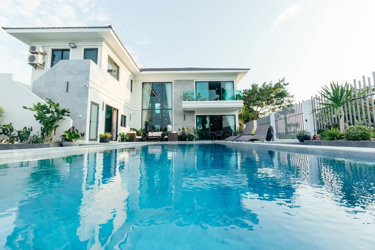 Modern Resort Style Villa i centrum av staden och nära stranden. Bra läge = Stort hus med pool = unik stil = fredlig miljö. Seahouse Huahin är ett vackert hus i modern resort-stil med trevlig,stor och saltvattenpool i centrum av staden. 3 minuters promenad till Blu'port köpcentrum (nyaste och största i stan) och 5 min promenad till stranden nära Huahin intercontinental hotel. Inte vid stranden men på gångavstånd. 10 minuter med taxi till Huahin nattmarknad.