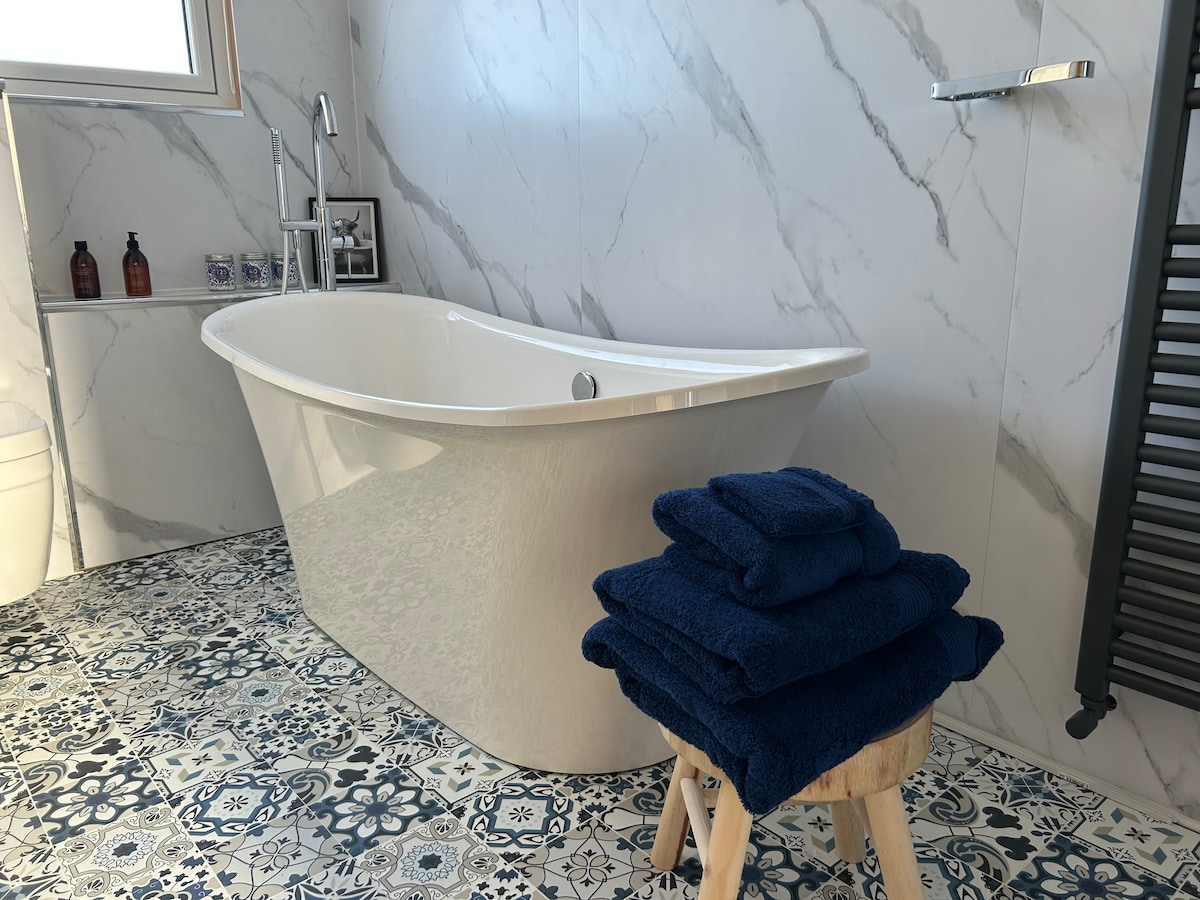 Denna grindade lyxiga lägenhet ligger vid foten av Cavehill, med utsikt över den fantastiska utsikten över Belfast stad, och är den perfekta dolda tillflyktsorten. Du kan koppla av i bubbelpoolen och poolen på den privata balkongen när du tittar på de livliga stadsbelysningen, eller så kan du ta en naturskön promenad över Cavehill för att besöka Belfast Castle och Napoleons näsa — båda ligger precis utanför dörren! Du är också bara 10 minuter från Belfast centrum där du kan njuta av alla sevärdheter, shopping och restauranger Belfast har att erbjuda.