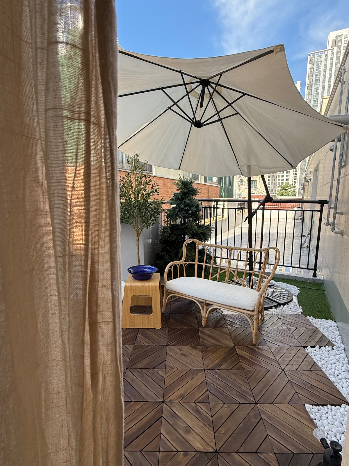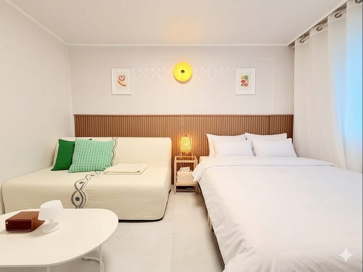 🌿 Jukmajae – Trädgård och hanok med bambu Det är ett privat enskilt familjehem där du kan känna Hanok-känsligheten och modern komfort samtidigt mitt i Seoul. Exteriören bevarar den lugna stilen hos en traditionell hanok, och interiören är inred med en elegant modern inredning, så att du kan njuta av både kvaliteten på traditionen och bekvämligheten med moderniteten. 🏡 Märken för annonser 1 Privat trädgård med ett bambuträd Parasoll utomhusbordsset för 6 personer och elektrisk grill utomhus tillgänglig 2 söderläge + stora fönster Alla rum har stora fönster och är fulla av naturligt ljus. 3 rymmer upp till 8 personer (1 enkel + 3 queens) 4 Netflix · YouTube tillgängligt (personlig kontoinloggning krävs) 5 Nära stora turistattraktioner i Seoul Det tar ca. 15-25 minuter med kollektivtrafik till 🚇 Myeongdong, Jongno, Gwanghwamun, Gyeongbokgung, Seochon, Insadong, Namdaemun, etc. 6 Nära busshållplatsen vid flygplatsen Ta ✈ flygplatsbussen 6002 och stig av vid hållplatsen Sinseol-dong, sedan kan du gå till boendet.