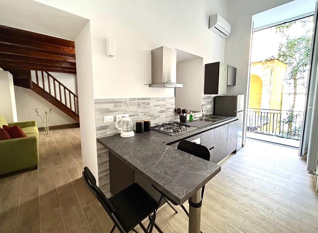 Lyxlägenhet: en kombination av klassisk elegans och modernitet, precis renoverad med JACUZZI och PRIVAT TAKTERRAS på 90 m² där du kan beundra vulkanen Vesuvius. Beläget i en historisk byggnad på 3: e våningen utan hiss i hjärtat av gamla stan, kan du nå allt genom att gå. WiFi, PrimeVideo, Nespresso och bagageförvaring GRATIS Sevärdhet • 2 min Duomo • 4 min tunnelbana Neapel • 6 minuters tunnelbana L1 & L2 • 5 min tågstation • 10 min hamn