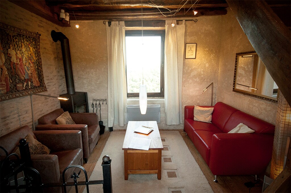 Vår stuga har delvis renoverats av oss själva för att göra den till en välkomnande och avkopplande plats. Den här gamla ladan där min farfar och sedan min pappa pressade vin är fortfarande kvar från den tiden, och skruven från pressen tronar stolt i mitten av vardagsrummet. Den gamla charmigheten samsas med komforten i moderna material, vi hoppas att du hittar en fristad för att ladda batterierna på denna plats. Vår lilla by ligger på den burgundiska landsbygden. Parkering
