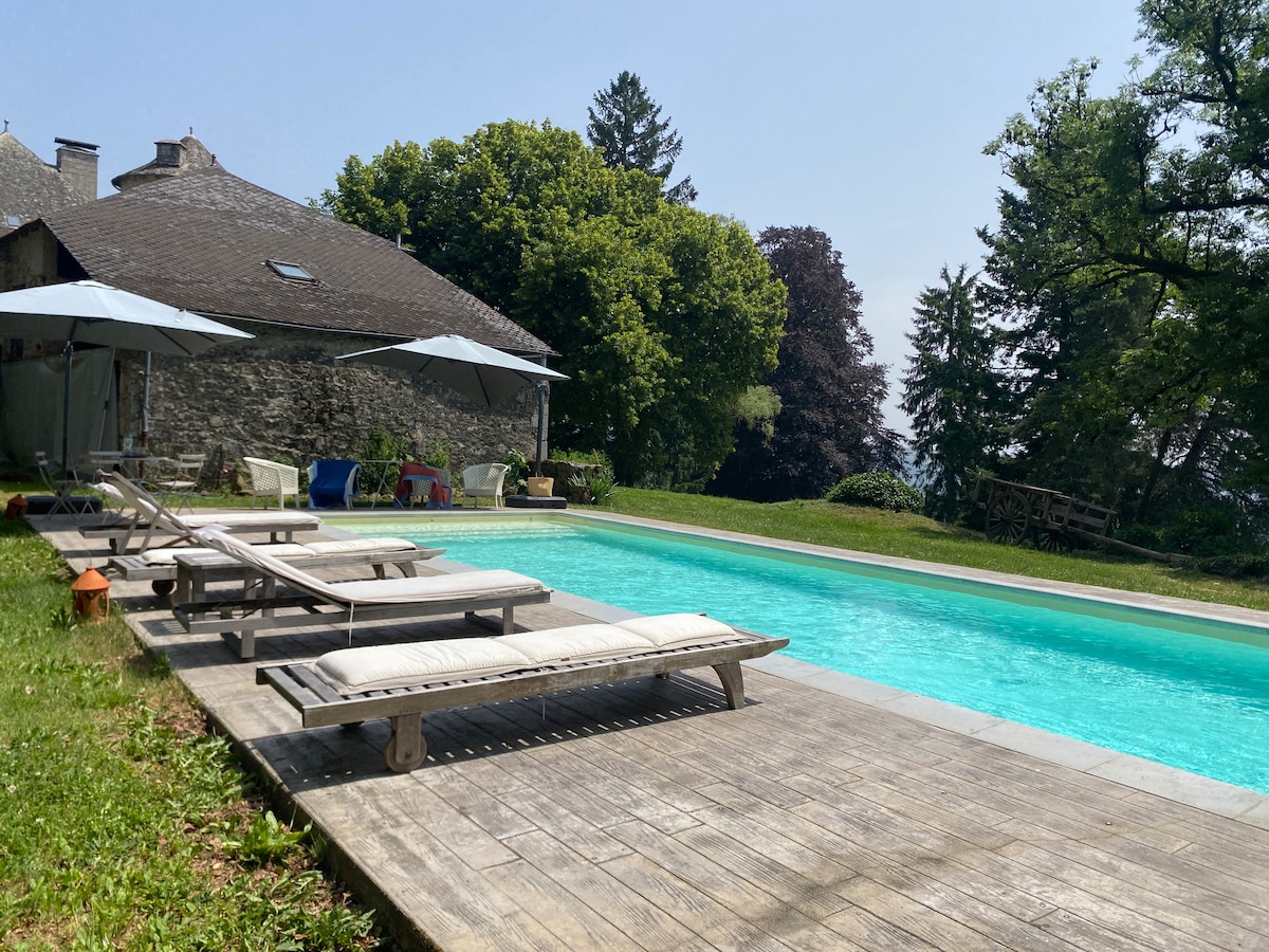 Château De La Grillere: Pool och privat parkland