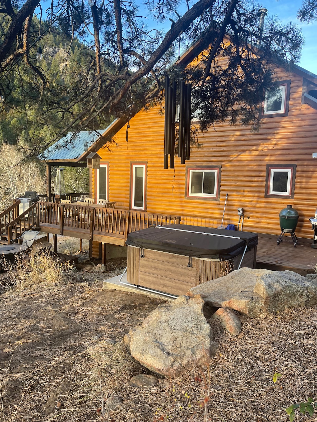 ★★★★★ "Privat bergsresa!" – Lee Stillhet kommer lätt i denna handgjorda timmerstuga. 💦 BUBBELPOOL och HÄNGMATTA – Sova under stjärnorna eller sväng under träden 🔥 MYSIGA KVÄLLAR – Eldstad, grill, trädgård och brädspel, golvvärme och vedspis ❄️ SVAL KOMFORT – Luftkonditionering för sommaren 🐾 DJUR- OCH FAMILJEVÄNLIGT – Tillgång till vandringsled i närheten, Pack 'n Play och barnstol 📶 SNABBT WI-FI – Streama, arbeta eller koppla bort 📍 10 min till Nederland — konstnärlig bergsstad, mat, musik och äventyr ➳ Återanslut till det som är viktigt.