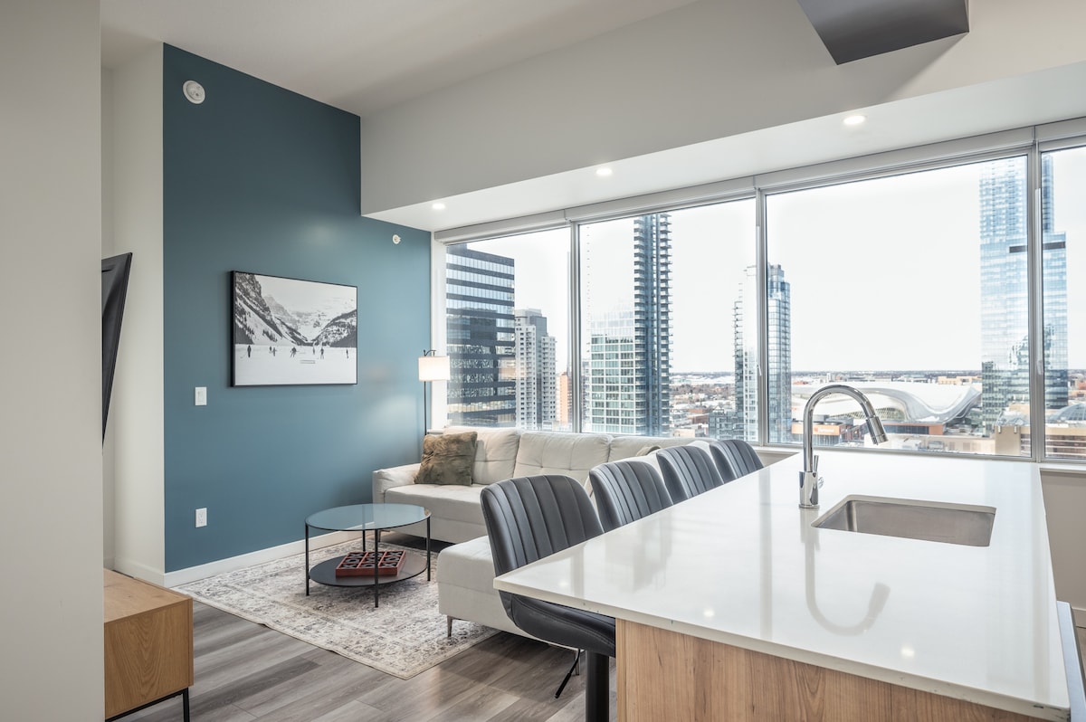 Upplev Downtown Living med oöverträffad utsikt! ✔ 5 minuters promenad från Rogers Place ✔ Säker underjordisk parkering ✔ Fullt utrustat kök ✔ 2 dubbelsängar och 2 fulla badrum ✔ Snabbt wifi Gym ✔ på plats ✔ Tvättstuga i sviten ✔ 55" smart-TV ✔ Nära de bästa restaurangerna och nattlivet Sittplats ✔ utomhus med grill ✔ Lounge/eventrum tillgängligt i byggnaden ✔ Massor av naturlig belysning ✔ Gratis kaffe ✔ Gratis schampo ✔ Persienner på varje fönster