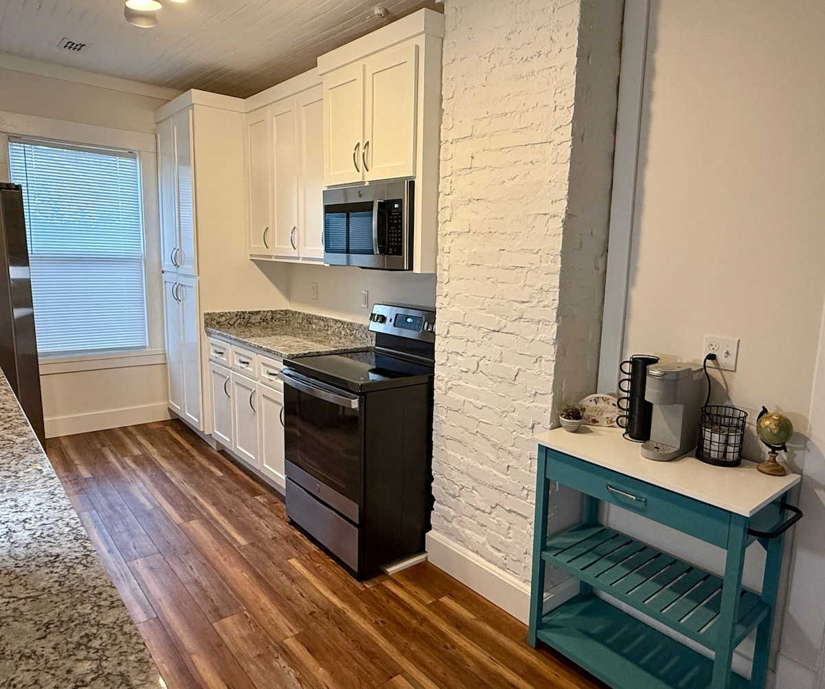 Kurerad stil inom gångavstånd till barer och restauranger i centrum, och bara 15 minuters bilresa till Pensacola Beach! Denna lägenhet har ett fullt utrustat kök, separat privat ingång, snabbt höghastighetsinternet, tvättmaskin och torktumlare, ett uppvärmt badrumsgolv och kommersiellt klassad ljudisolerad isolering. Lägenheten har 11ft tak, 100%cotton lyxiga sängkläder och kuddar, regndusch och en privat dedikerad parkeringsplats bara några steg från entrén.