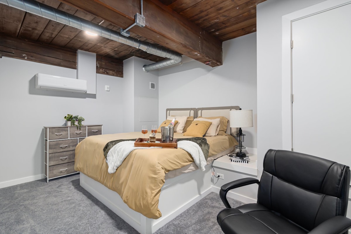 Bara några steg från allt som Providence centrum har att erbjuda är vår vackert inredda exklusiva lägenhet med utsikt över staden och gården. Detta utrymme erbjuder ett stort fullt utrustat kök, dubbelsäng, höghastighetsinternet, 55" smart-TV med Disney+ och Netflix. Byggnaden har ett fitnesscenter, uppvärmd pool, grill och picknickplats, en concierge, invånarlounge och täckt parkering. Ingen bil behövs, vi är bara en kort promenad till alla butiker, restauranger, gallerian och fantastiska Waterfire!