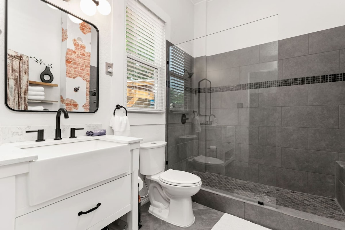 3 BR | 2 BA • Gratis parkering • Gångavstånd till Alamodome, River Walk och The Alamo Förhöj din vistelse i San Antonio på The Urban Chalet — ett totalrenoverat viktorianskt hem från 1900-talet i ett av centrums mest livliga stadsdelar. Njut av moderna bekvämligheter, designdetaljer och oslagbar tillgång till stadens främsta attraktioner — allt inom gångavstånd eller en snabb resa bort. Oavsett om du besöker för affärer, familj eller en rolig semester, blandar vi lyxen av en high-end vistelse med den varma komforten av hemmet.