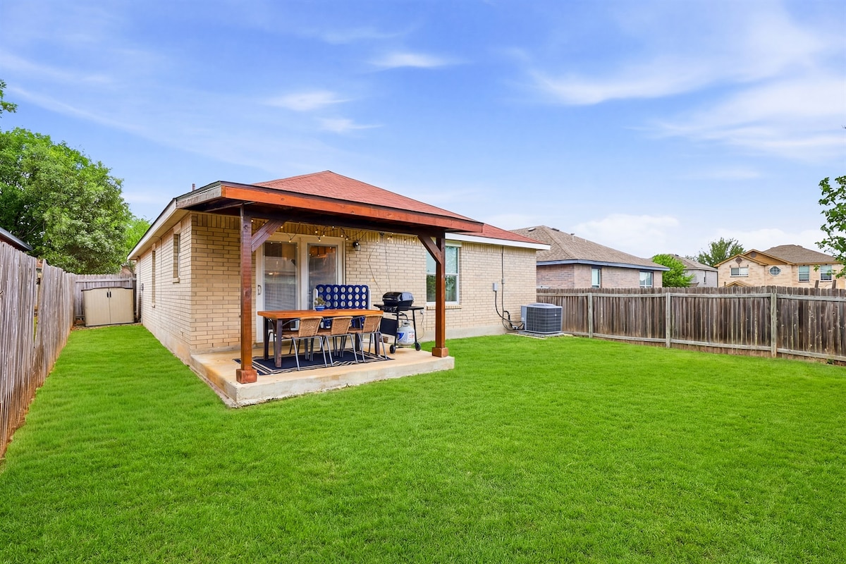 • Familjeutflykt nära Medical Center, Fiesta TX, SeaWorld, Downtown och flygplatsen • R/O-filtrerad = rent vatten och 3 typer av kaffebryggare • Lyxiga Helix-madrasser • Arbetsstation – Wi-Fi 402 MBPS • Lyxig stor dusch med 12-tums regndusch + handhållen dusch • Mörkläggande gardiner • Fullt utrustat kök • Brädspel/boccia • 2 kingsize-sängar +1 queensize-säng • Den fjärde sängen är en bärbar enkelbädd i mem-foam • Högst ett trappsteg – ett våninghus • Eldstad och gratis ved