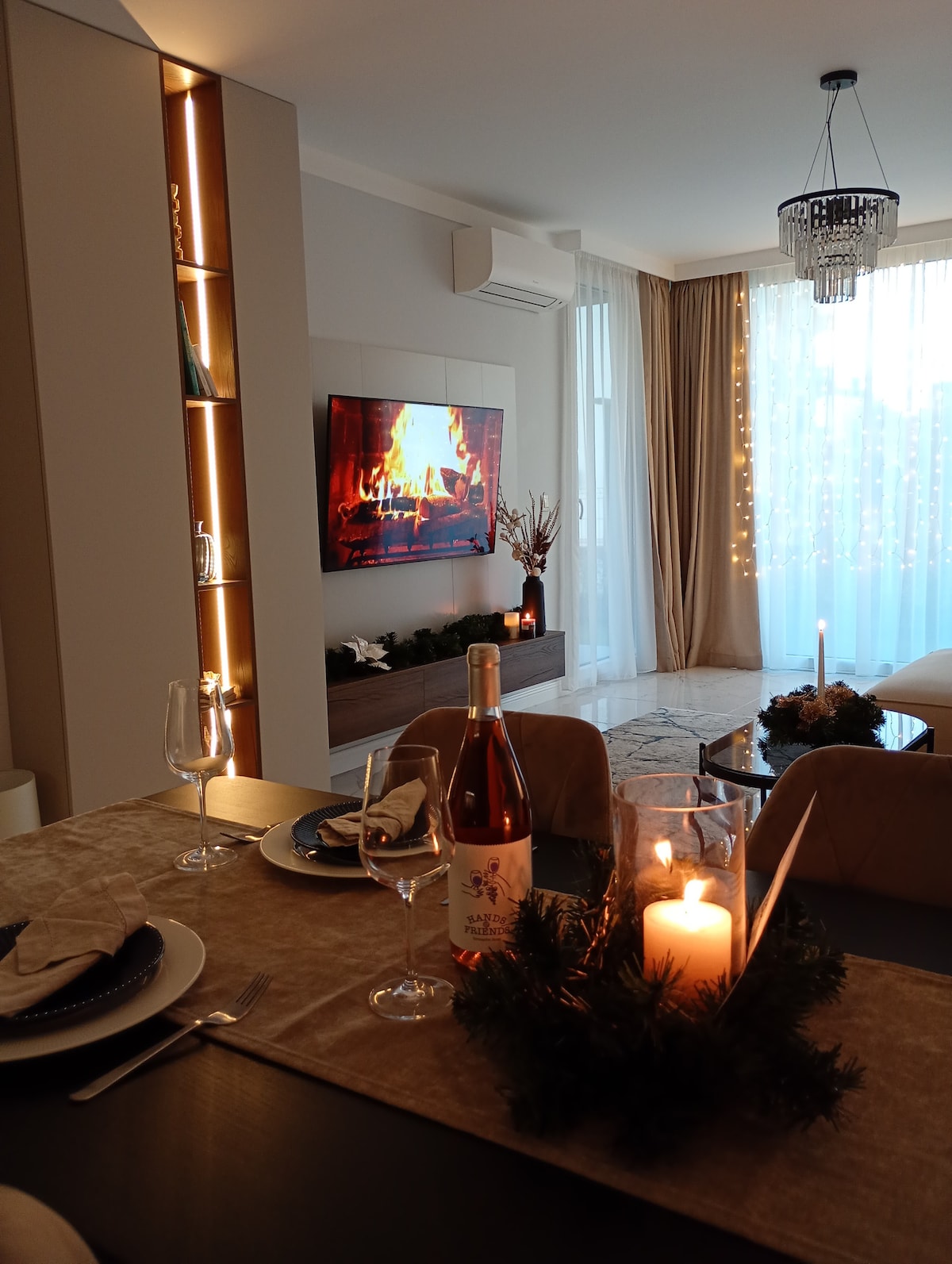Welcome to your dream getaway! This stunning luxurious home nestled at the foot of Vitosha mountain offers an unparalleled escape for those seeking sophistication and comfort. It’s located near Ring Mall , IKEA and Ring Road. The spacious living room features a generous, plush sofa, amazing kitchen, equipped with modern appliances, and a beautiful TV wall with an electric fireplace. There is a stylish bathroom, a comfortable double bed in the bedroom and a cozy terrace. Free parking place!!!