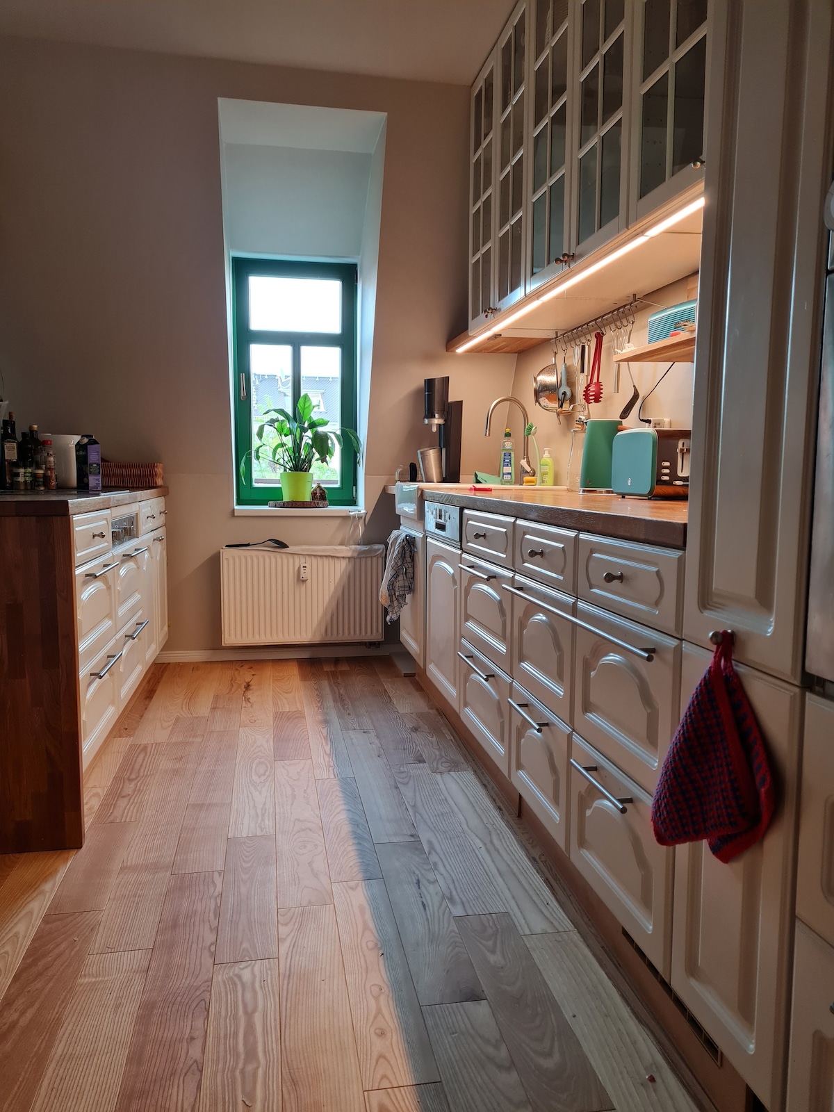 Vår stora lägenhet med fantastisk utsikt över Elbe ligger centralt vid Elbe, utsikten går mot gamla stan och dess sevärdheter. Men den ligger på Neustadt-sidan och så är det bara några minuters promenad till den livliga färgglada Neustadt med kaféer, barer och dansställen, men lika snabbt är du i barockkvarteret med restauranger, museer och köpcentra. Du kommer säkert att trivas i våra stora rum med komplett kök och biljardrum. Perfekt för familjer.