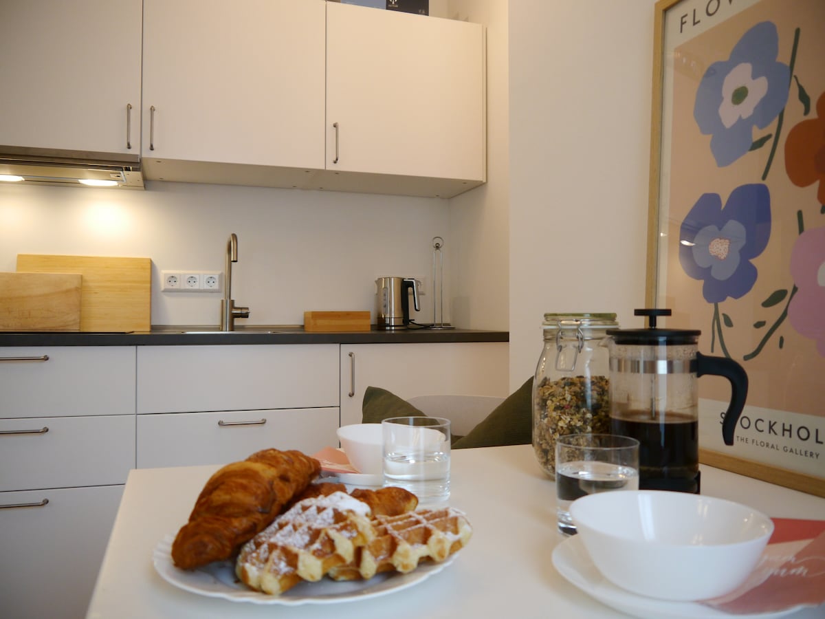 I vår ljusa ATMYSPHÈRE 1-rumslägenhet hittar du allt du behöver för en trevlig vistelse i Dresden: • Kök • Smart-TV inkl. Waipu TV (272 kanaler) • hållbar kaffemaskin och te • Snabbt Wi-Fi för hemmakontor och underhållning • Tvättmaskin / torktumlare • Balkong med utsikt över grönområden • Walk-in garderob • Utmärkt läge i det eftertraktade trendiga området • Toppanslutning till kollektivtrafik inkl. Neustadt järnvägsstation • i en modern nybyggnad från 2023 med hiss