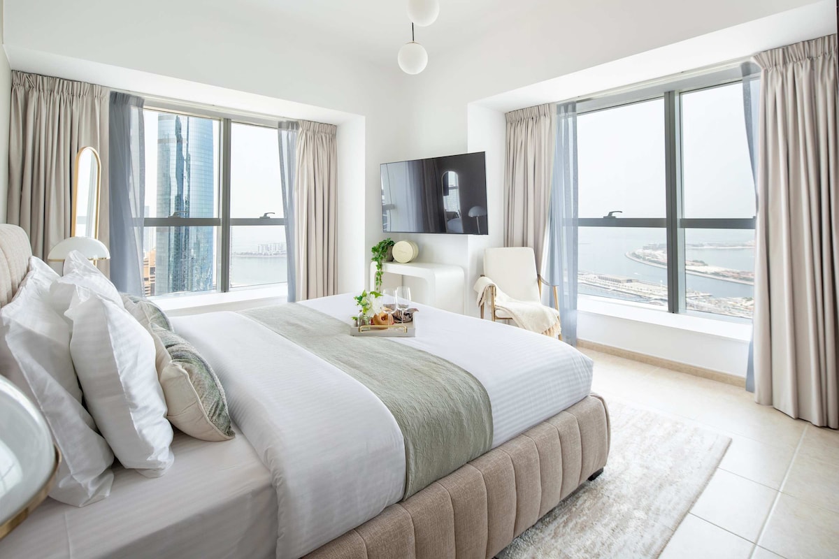 - Prime läge i Dubai Marina — bara några steg från stranden - Rymlig balkong med panoramautsikt över stadens silhuett - Designad för både fritids- och distansarbete – Snygga interiörer i kombination med blixtsnabbt wifi - Dedikerad arbetsyta med ett bekvämt skrivbord och stol - Smart-TV för sömlös streaming och underhållning